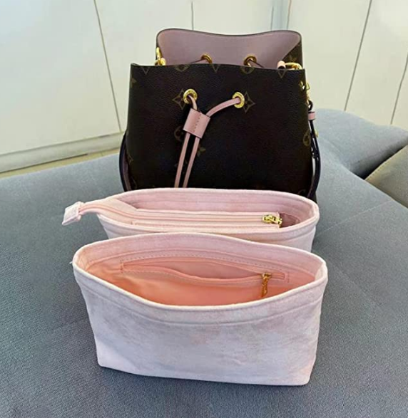 2-pack Neonoe wallet storage bag insert suitable for LV NEONOE MM bucket bag storage bag soft luxury material not felt (pink, large)