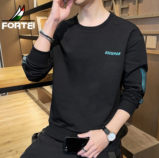 フルカラーforteiセーターメンズ春と秋ラウンドネックファッションカジュアルスリムフィッティングロングスリーブTシャツ韓国プルオーバーボトムシャツメンズコート