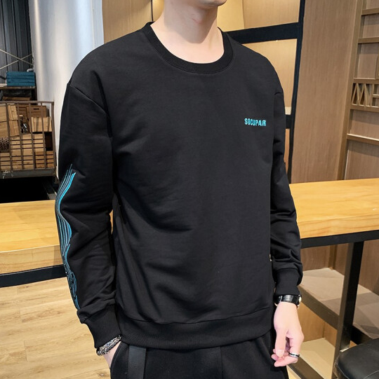 Fullcollar fortei sweater men's spring and autumn round neck fashion casual slim fitting long sleeved T-shirt Korean Pullover bottomed shirt men's coat KPR 2012 Black XL